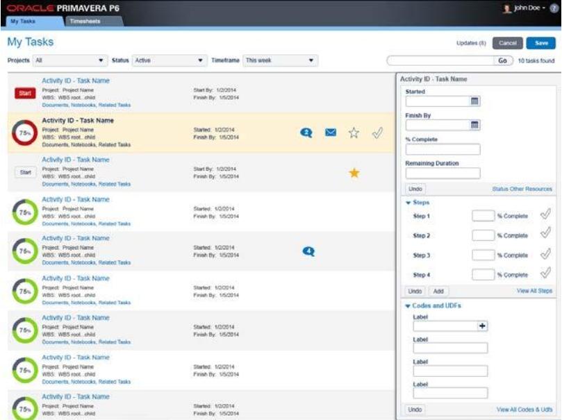 圖 2. P6 Team Member 使項(xiàng)目參與者可以輕松更新任務(wù),以反映該項(xiàng)工作已經(jīng)完成。
